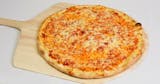 Flat square pizza, fresh mozzarella cheese, marinara, sprinkled parm, and basil.